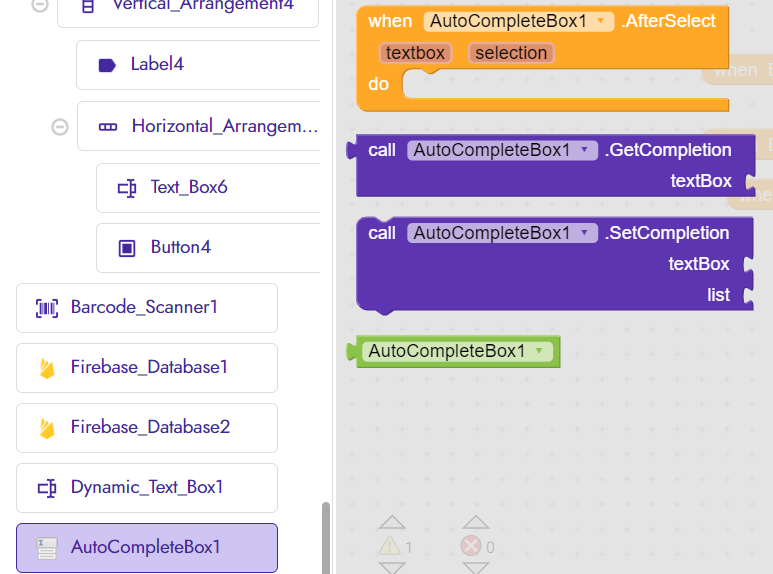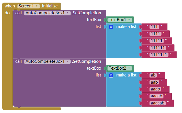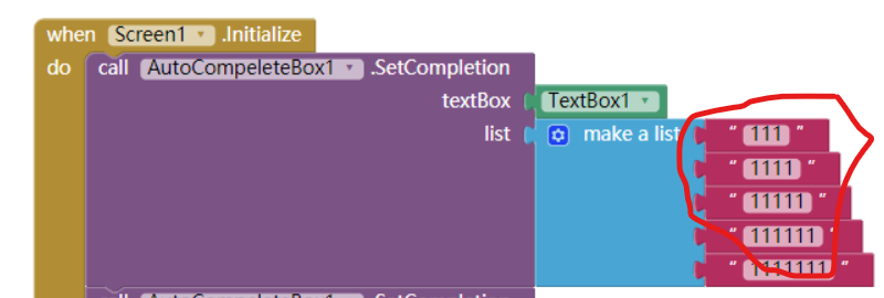 Then the Set completion text box block where you add the required text box component and the above said global list