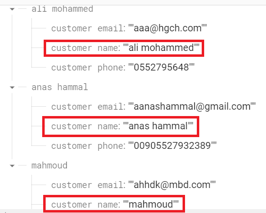 will appear all suggetions that 's stored in firebase with tag “customer name” and begin with letter a