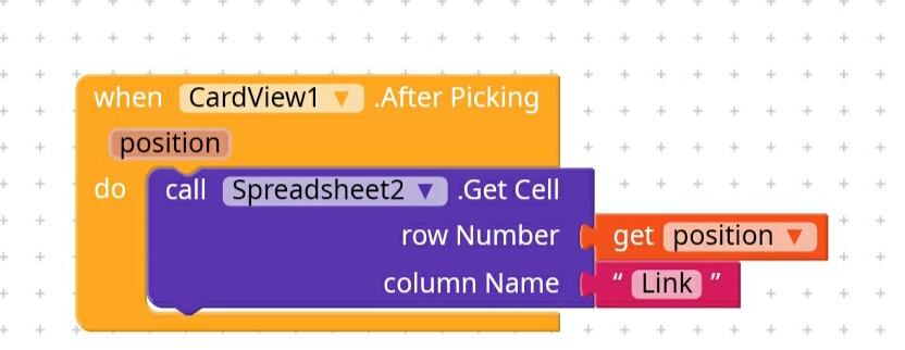 when cardview after picking , set vertical arrangements(all arrangement except one which conatin webviewer) visible to false and set webviewer visible to true and load link