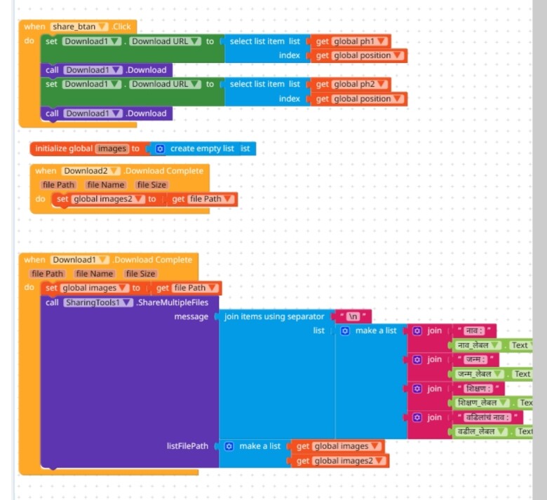 I want to share two images at once, for that I tried this, extension, everything else is fine but, when I share, two such lists are shared, I want to share two images and this text message in one share.