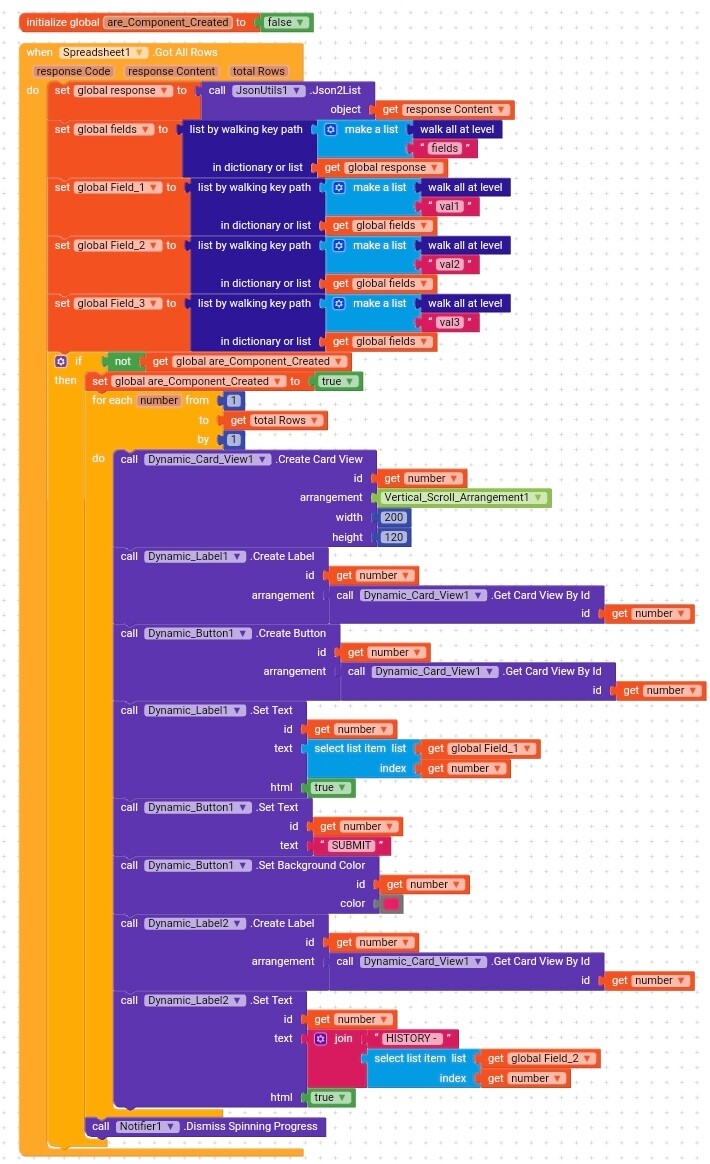 I think it is a kodular bug so the GotAllRow event is occuring on getting the cell