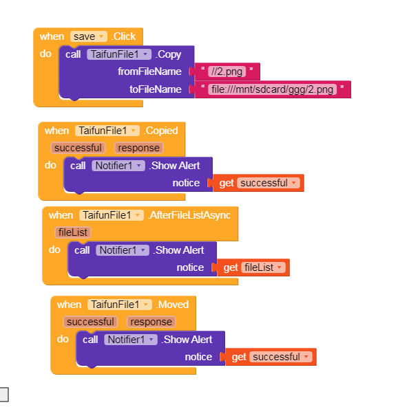 Didnât understand you.you are using copy file.Which doesnât fire the copied event.As i understand from the extension docs.Only the CopyAsync block firse the Copied event