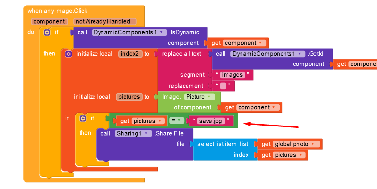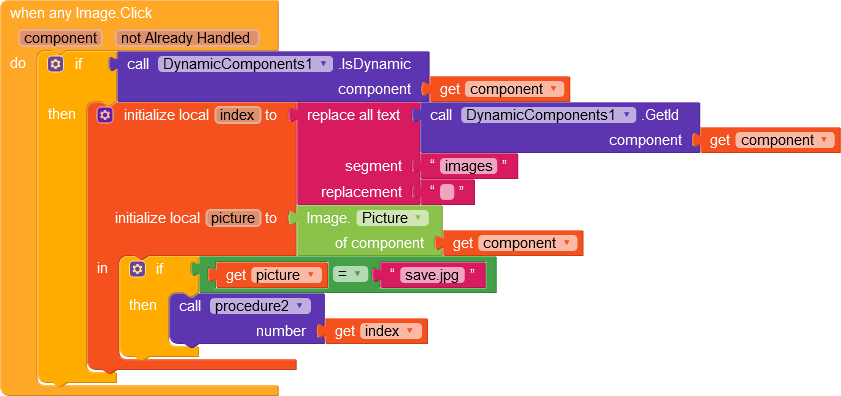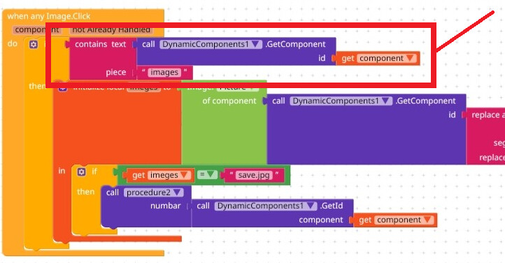 You are calling the component in the contains text block, that is wrong as per your logic, but instead call dynamic ID of the component. Because your ID inly contains the text images