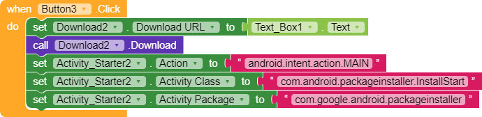 dear,users i have been working on installing my app update after it download apk file from my webserver by download component. i tried deephost extenstion on my android 9 ,as well as kio4 installer extension but at all nothing works.after that i tried activity starter but even that also not working,so please help me how to do that with sample aia,thankyou