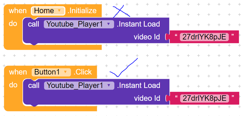 Youtube player: Instant load block is not working with Screen Initialize block