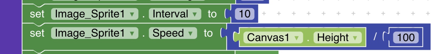 Sets Interval to 10 so that Sprite’s position is updated every 10 milliseconds (the equivalent of 100 times per second)