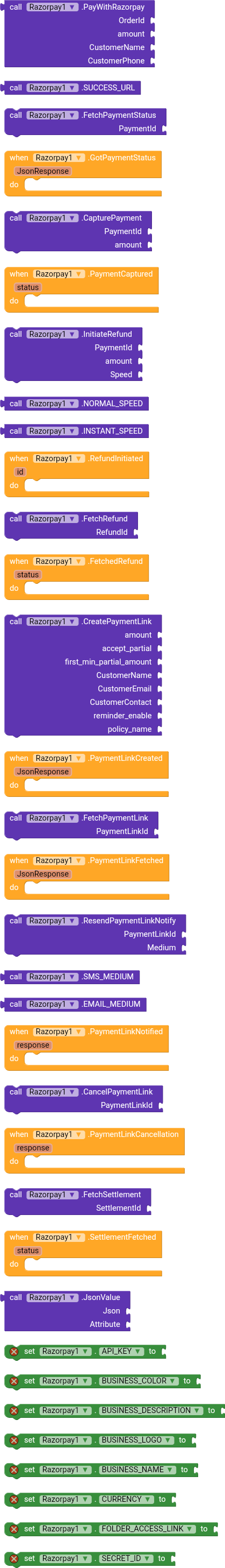 This extension is specially made for razorpay to make razorpay payment gateway easier for App Inventors.