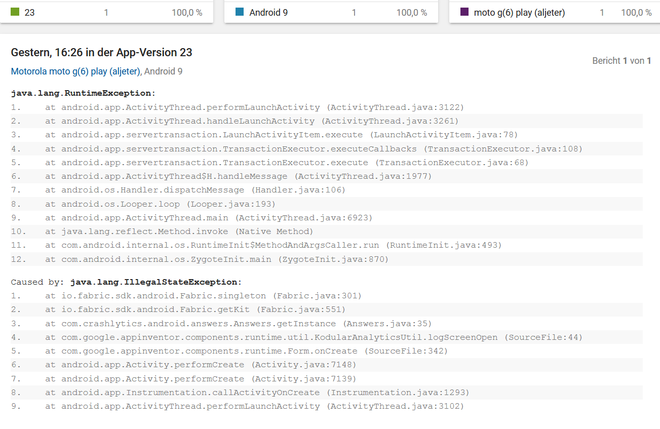 Does anyone have any idea when the crash will occur? I assume that once the app is started, data will be collected by fabric.io. When the app is closed, this data is transferred to fabric.io / Kodular. Maybe at this time it comes to the crash. Is that correct? If so, then the user would probably not notice the crash.