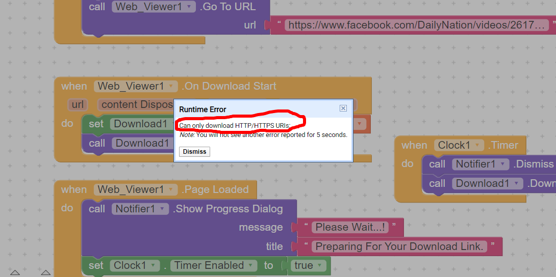 Hello great koders today I am trying to download the facebook video but I get this error!