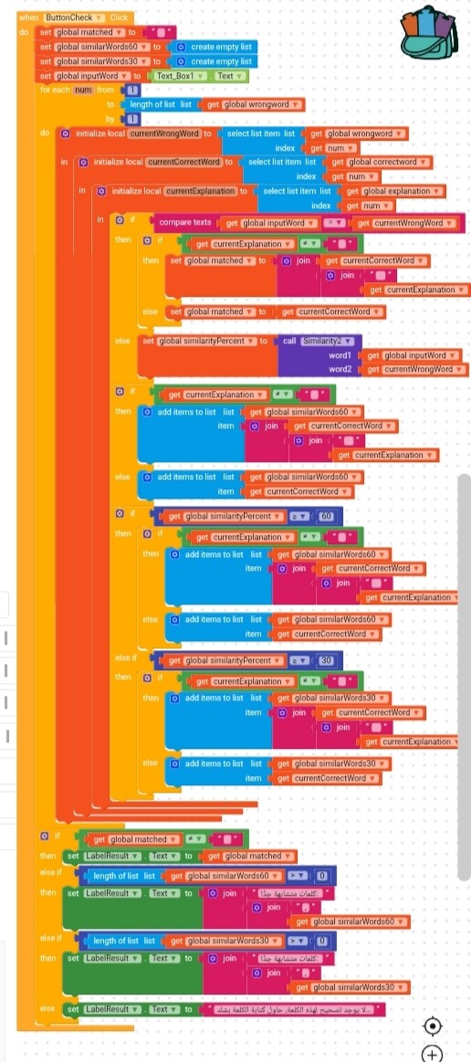 The app should let the user enter a word, and if it exactly matches a wrong word, it should display the correct word and the explanation if available. If there’s no exact match, it should check for similarity at 60%, and if that’s also not found, then check similarity at 30%.