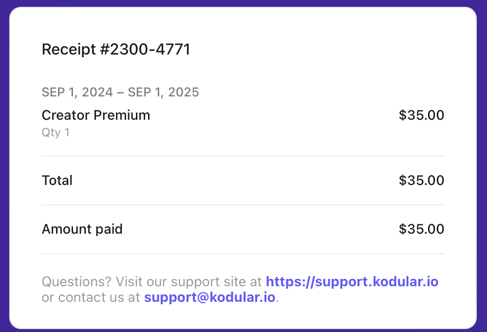 I purchased Kodular Premium last week, but my kodular app is still showing as free on Kodular. Could you please help me with this issue?
