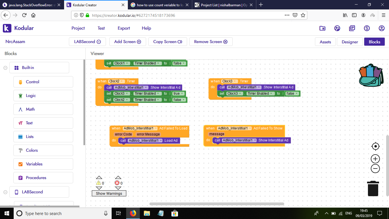 the loop is in the below blockes , where every time the ad is unable to load and recall the ad to load again. Now its again and again failed and a loop was created.