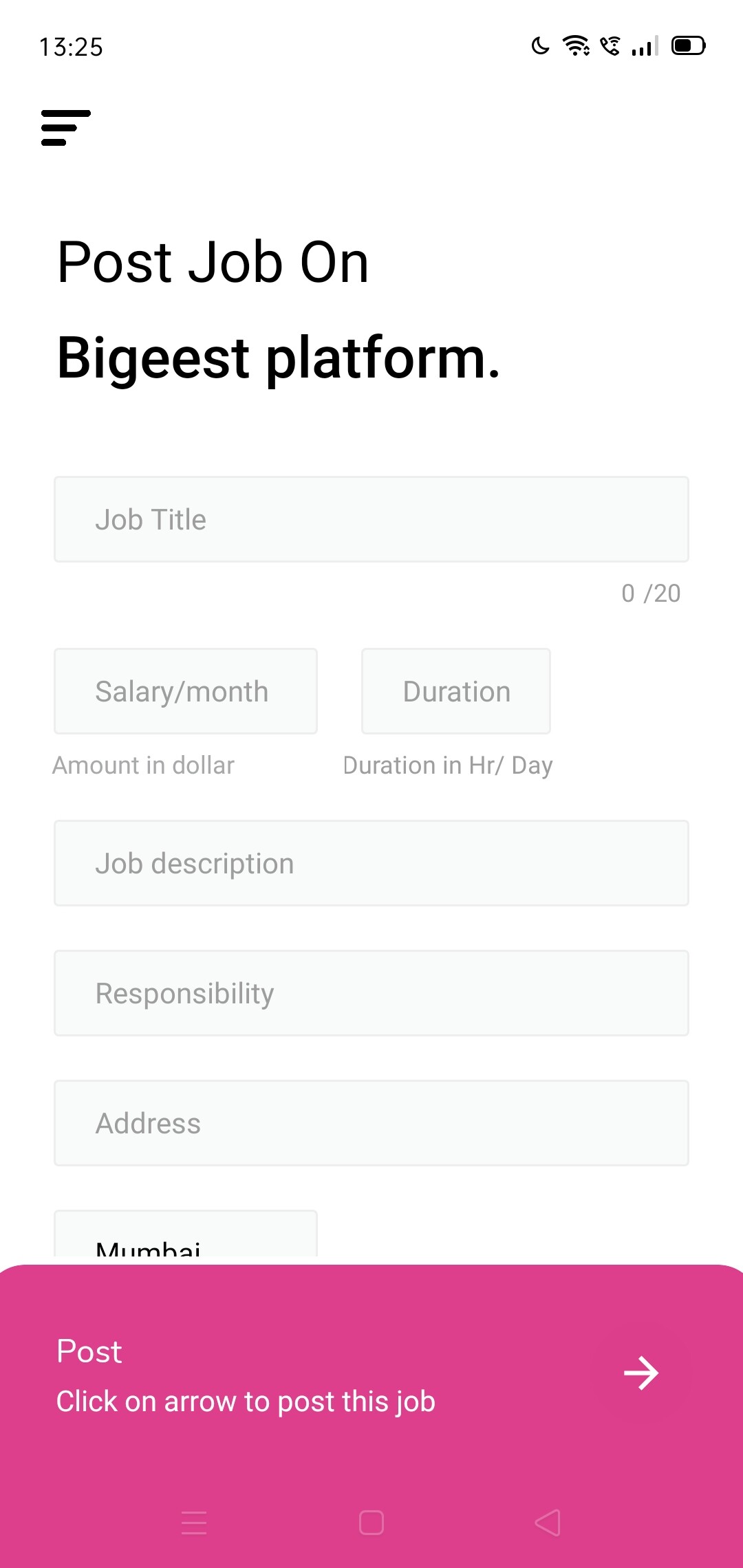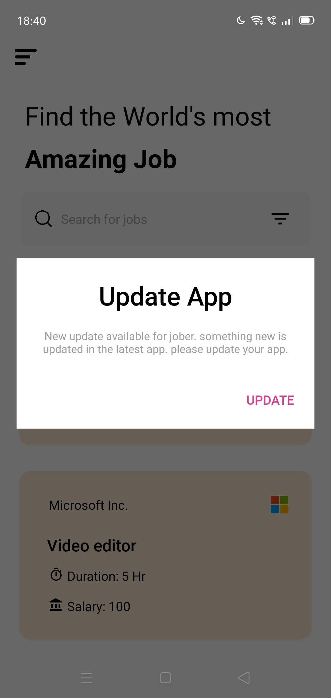 In this app user can register them selves either as employee or company. if user choose theme selves as employee then, on their dashboard they will see all the posted jobs. and other hand if user registered them selves as company then they can post their job in jober application. and they can stop to showing their job or they can start their job to display or they can permanently delete any jobs that they posted on jober application.