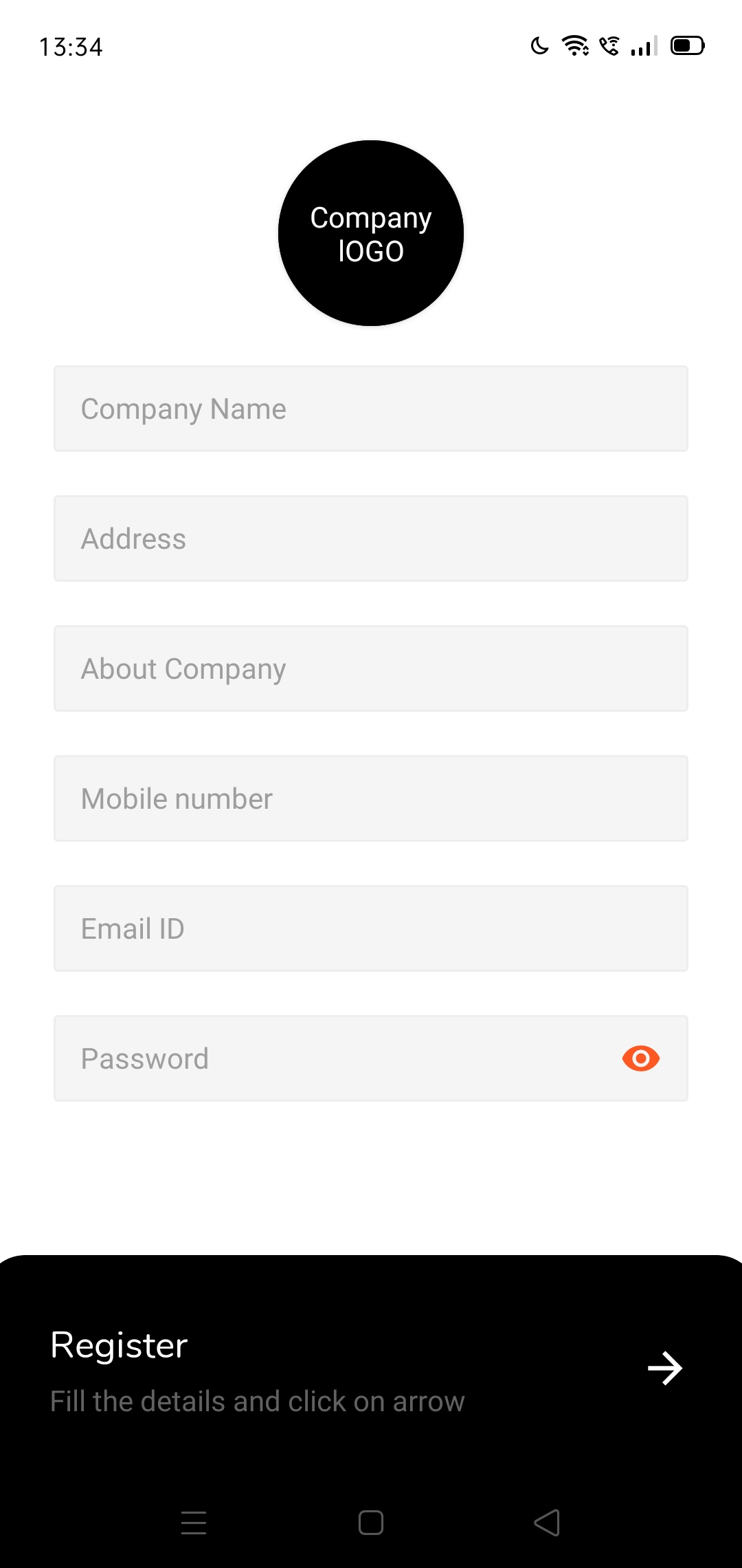 Login and registration screen for employee and company