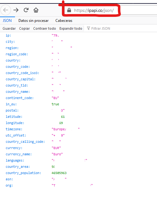 But if you use the URL https://ipapi.co/json/ you already get a Json with the IP and the other data. The lp is taken from the device that makes the request.