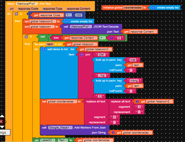 After returning a Json from a PHP script, I try to transform it so that I can add it to the “Add Makers from Json” event of the Google Maps component.