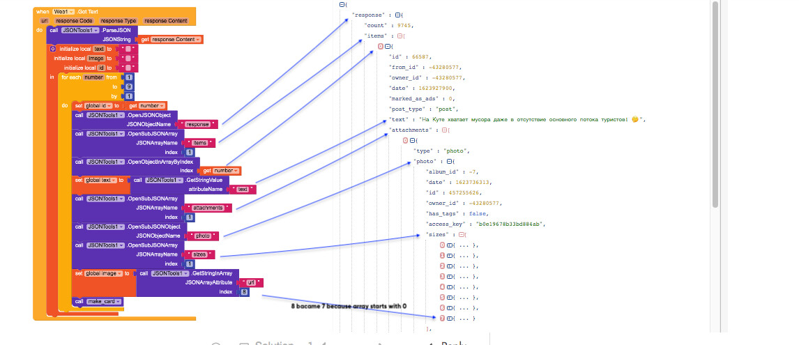 Someone, please help me to parse the JSON and display result in dynamic card. I struggle for days already to no success.