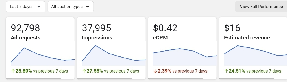 How much impression your Facebook ads are generating, now a days, i m getting 25% impressions with respect to ad requests which looks quite low and suspicious to me.