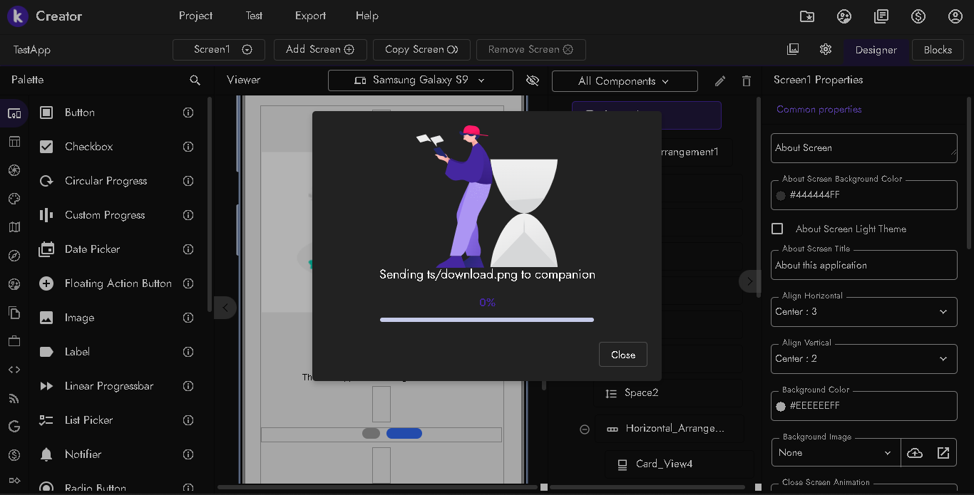 I mean kodular website cannot connect to companion.The status is still in the process of “Sending ts/download.png to companion” and also the status of the process remains 0% for a long time.