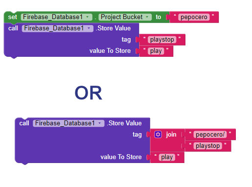 For this firebase example if I want to change the value of “playstop” I would have to indicate where it is, and that is done with the project bucket