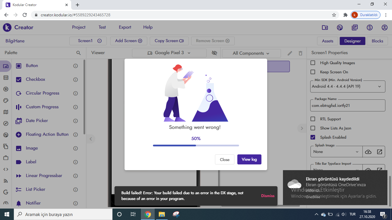 Yesterday everything was fine, this morning did not download the apk and gave this error, I downloaded it yesterday, it was not a problem. I just added a few buttons and added a label