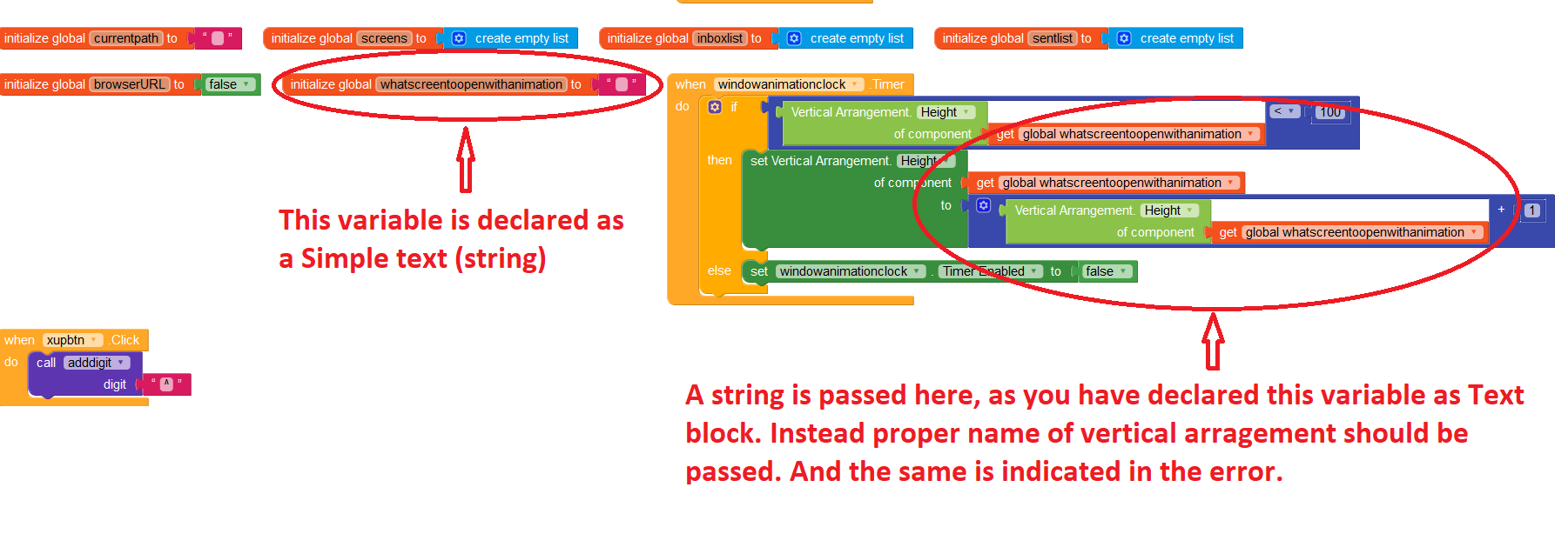 What to do? (already checked, no component assign a string to a vertical arrangement)