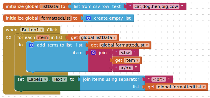 I tried the idea of using procedure and add item to list to get this done but I was still getting some bugs related to html not working so I decided to use dynamic labels to get this done without losing much more time. With dynamic labels everything worked perfectly.