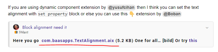 i try the extension you mentionned but i already use Dynamic Component but didn’t know how to use setProperty >> TextAlignment