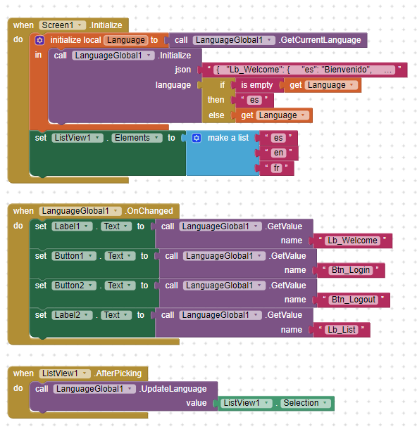 Screen1 is not necessary, it is configured on any other screen since the value is saved in the local database. When you start the app, it will take the saved value of the language.