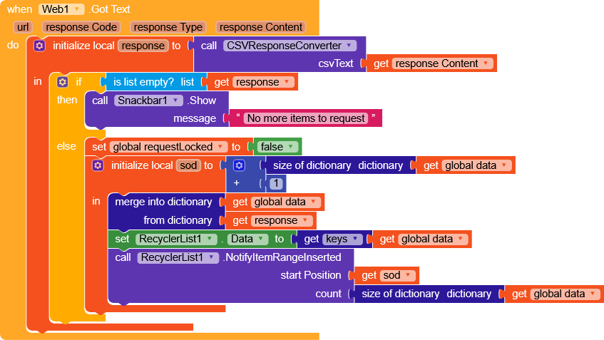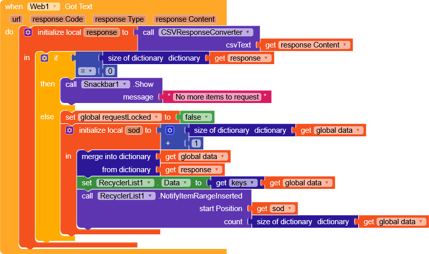 ShowListAsJson)- I show a snackbar indicating that there are no more items to download