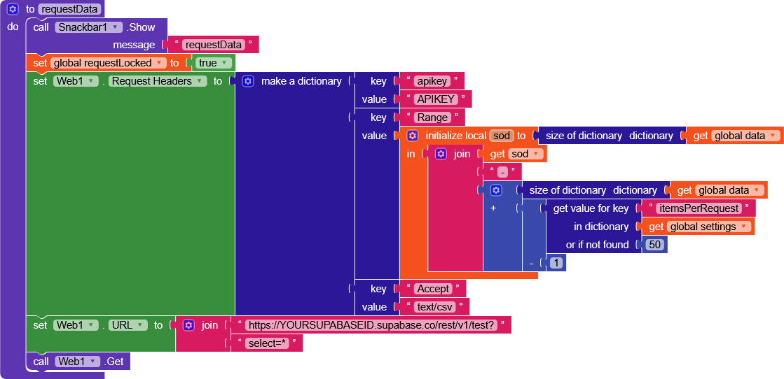 requestLockedto true in order to block any other requests (inRecyclerList.OnScrolledeverything will be clearer) - We set the headers of our request, with Supabase we need to pass
