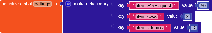 itemsPerRequest: the number of items that will be requested each time we reach the enditemRows: how many rows to display on the screenitemColumns: how many columns of items on the screen