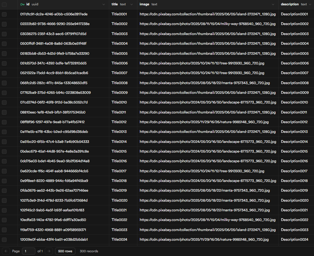 In this example I used Supabase with this structure,