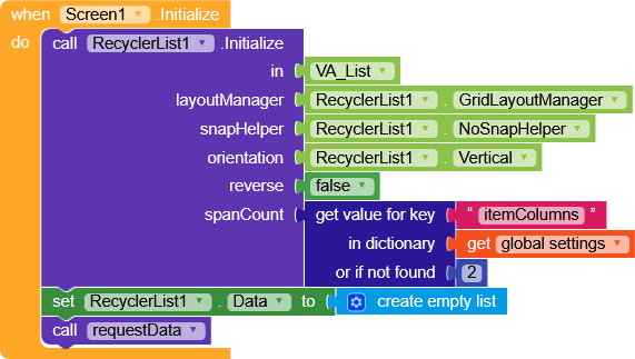 Here we initialize the RecyclerList,