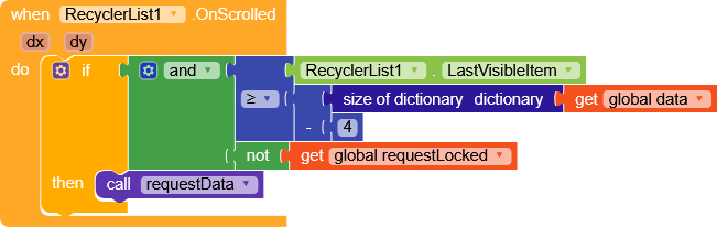 If the last visible element is greater than our data dictionary size minus 4, and requests are not locked, we request new data.