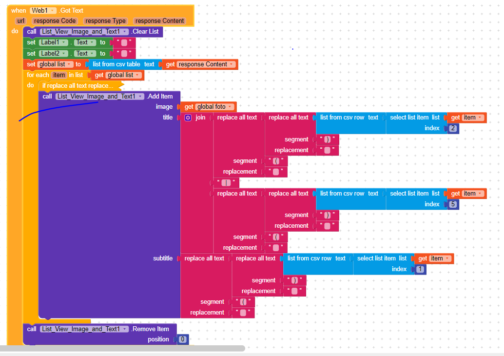 I’m downloading a spreadsheet in CSV format, and showing them my app, but when have 100+ itens in list, the app have lags, so I want to display just 10 itens of a list instead all list how i’m doing. How to do this in blocks?
