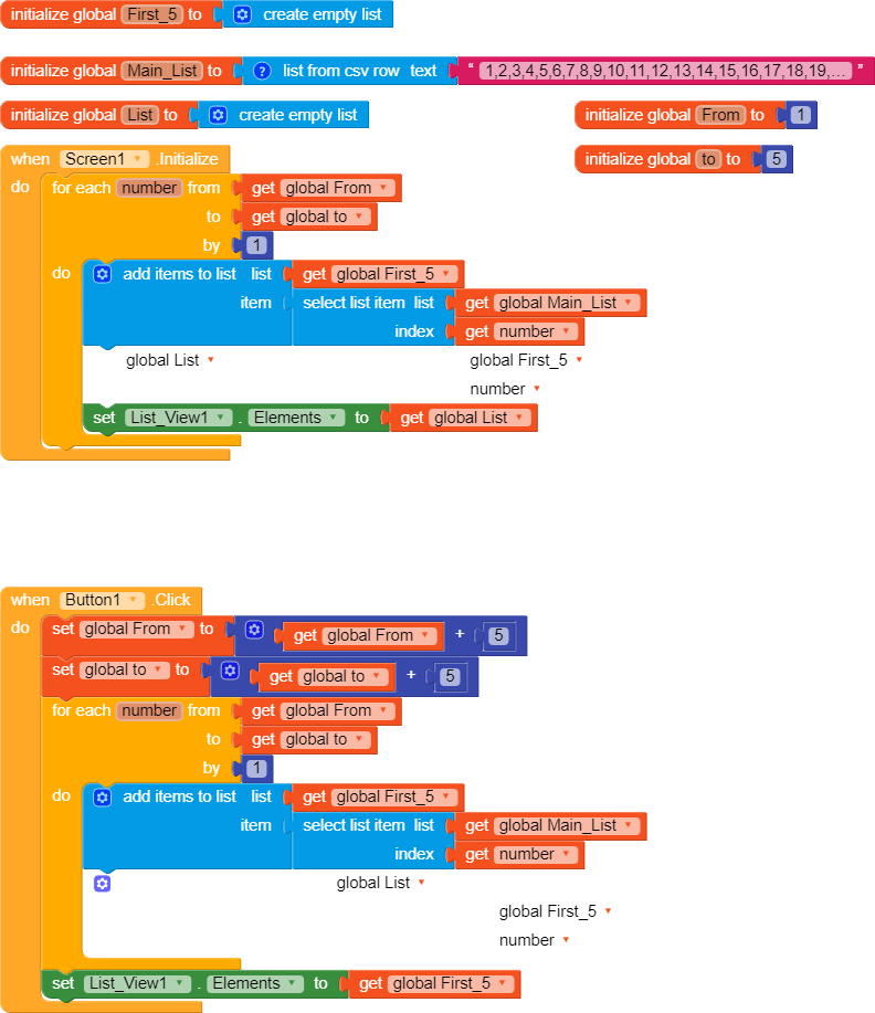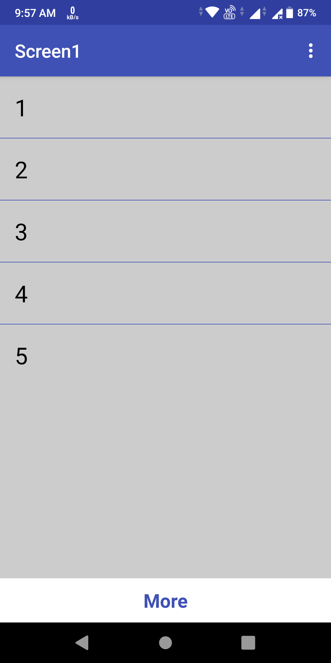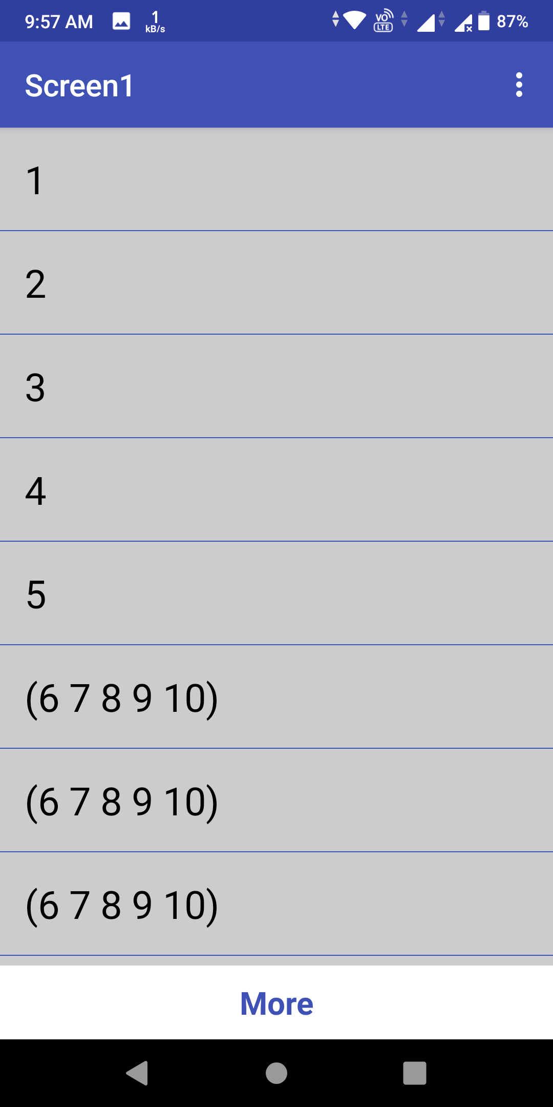 i want to make an list view in which it have to add 5 more items in list but whenever i click on next it add items but not as i want