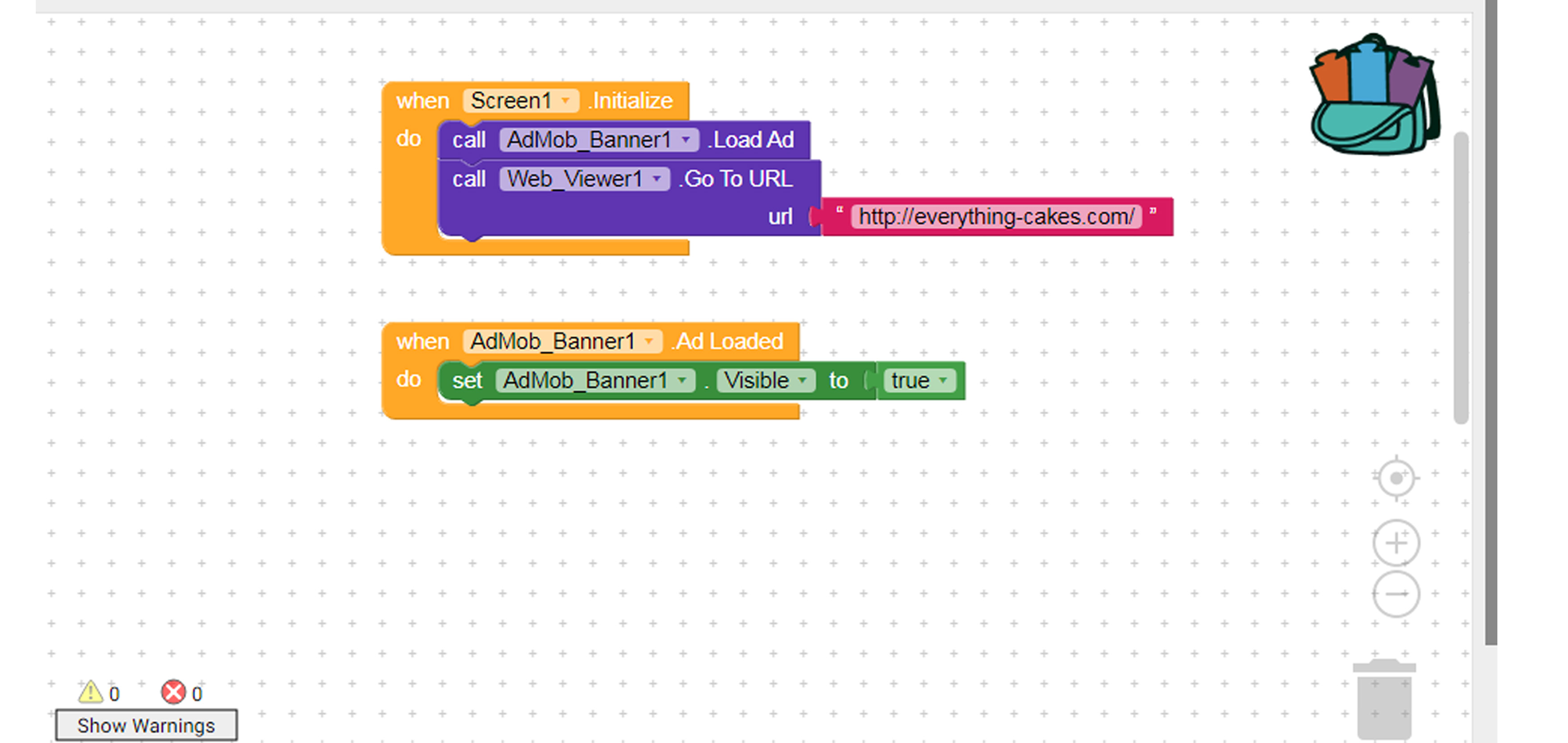 OK, yours look like mine. What I want you to do is under the AdLoaded block. Just delete that whole thing because it has no use. My second question is are you using the Companion or a built APK?