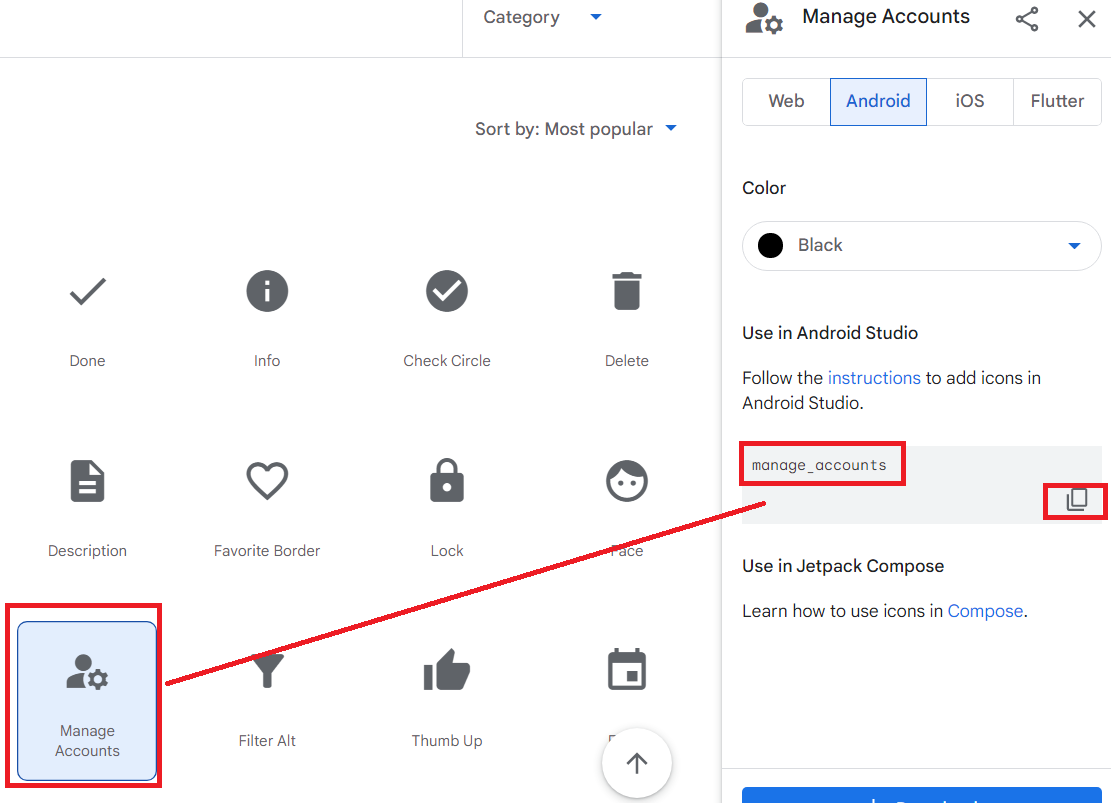 Go to https://fonts.google.com/icons?selected=Material+Icons
