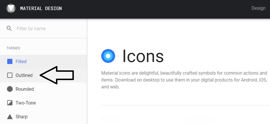 For example, here is the Outlined .ttf version of the Material Icons that created by these steps: Material Icons Outline.zip (106.4 KB)