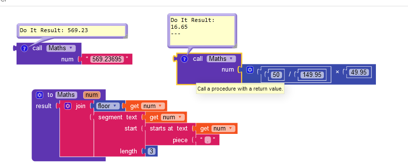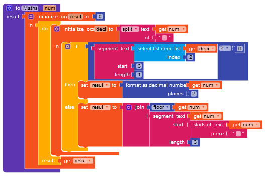 Hello everyone, my question has to do with rounding numbers using the decimal formatting block. It works great, but I noticed that it rounds greater than or equal to 5. That is ≥ 5. I wanted someone to help me round numbers greater than or equal to 6 after the decimal point. This is ≥ 6.