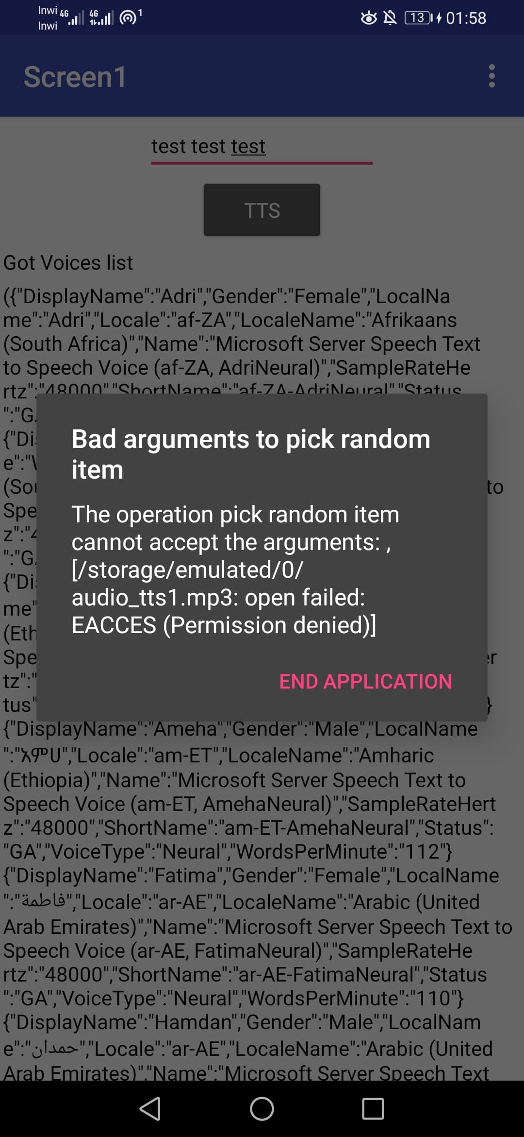 II get a response now but i still have this problem i thought it’s a storage permission problem so i tried to ask permission for storage first but still have the same issue