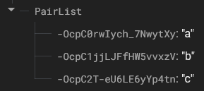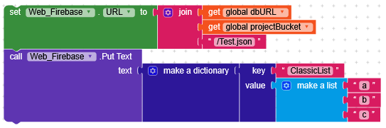 A list that we send to Firebase using the Web component will be interpreted as a dictionary with keys 0, 1, 2, and so on.