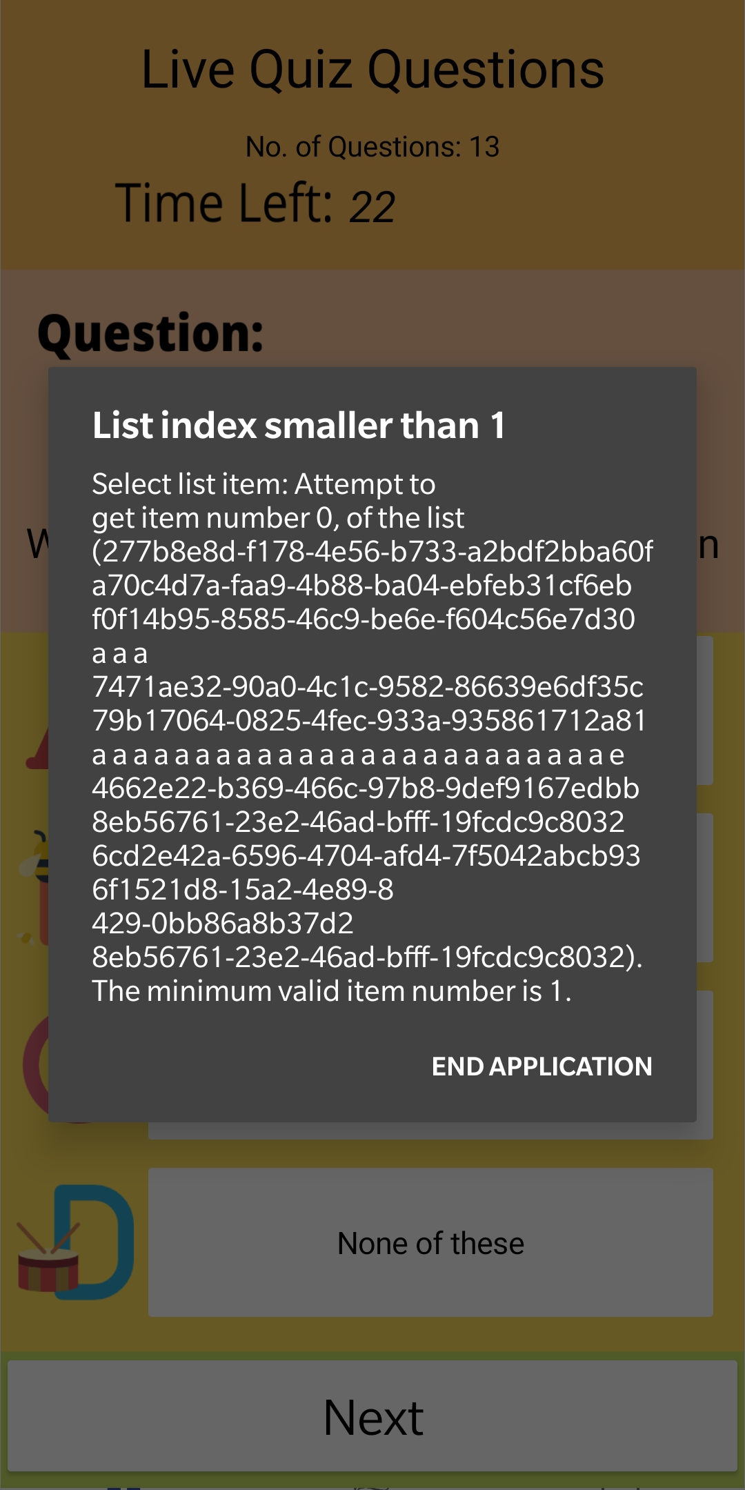 - When I didn’t choose any answers from the quiz and I press submit, it shows this error