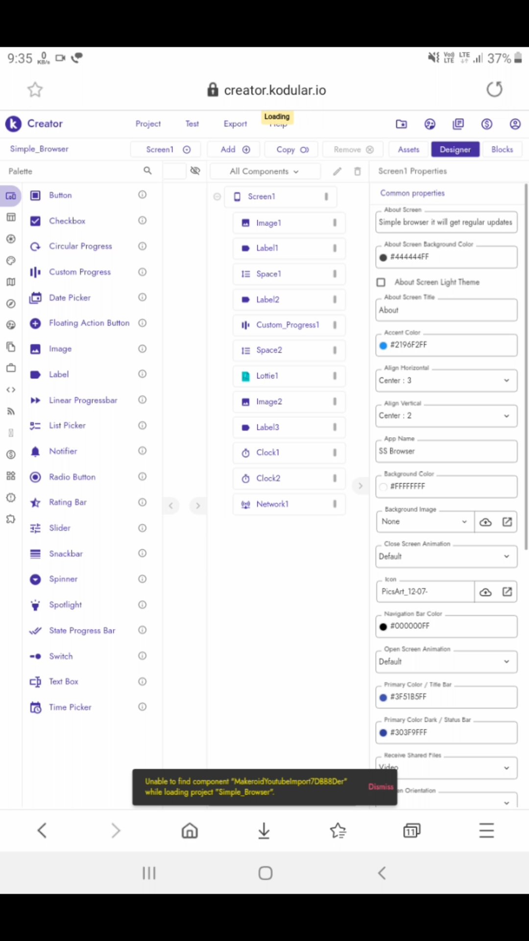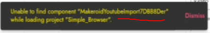 As you can see from the image, the component Youtube has also been renamed and there by creator can’t proceed as the new renamed component doesn’t exist Kodular..