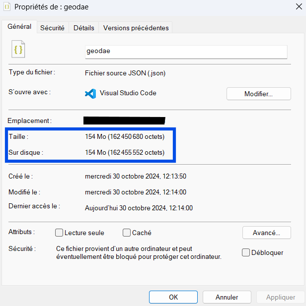 After downloading the dataset (included in the code), it appears to be very heavy (more that 100Mb (or 100Mo in French)) :