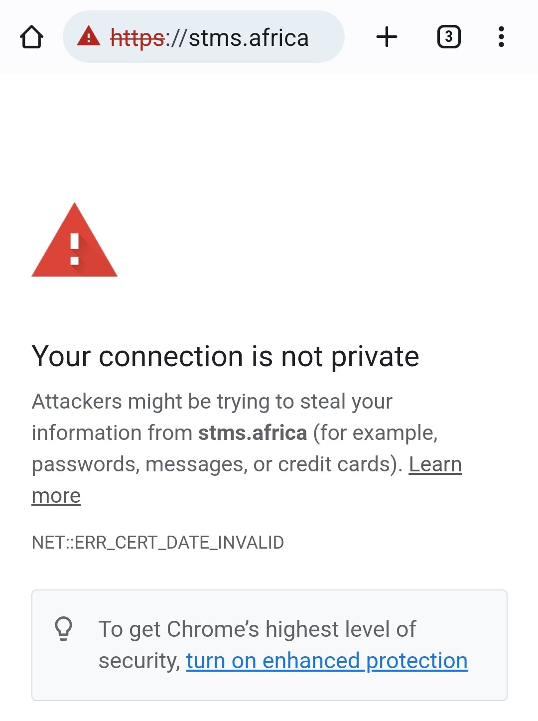 You might want to do a Google search for ERR_CERT_DATE_INVALID yourself…