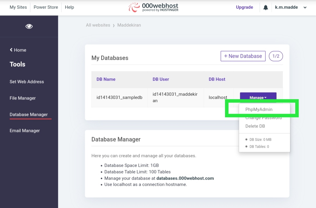Yeah free databases comes with such limitations. Better is to consider some geniune hosting providers which have good support system as well and lots of guides on how to stuff.