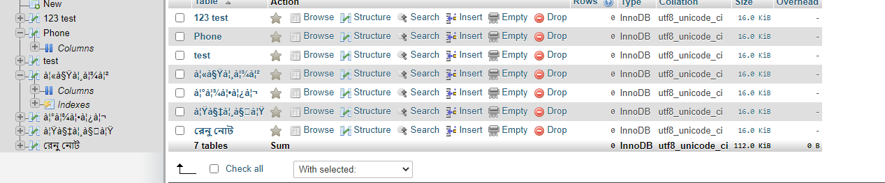 Hlw @Taifun, when I fix my variable name to conn then I can insert data or create a table but the problem is that my inserted data shows as some symbols. I can’t see the real inserted data. So now how can I solve this problem?