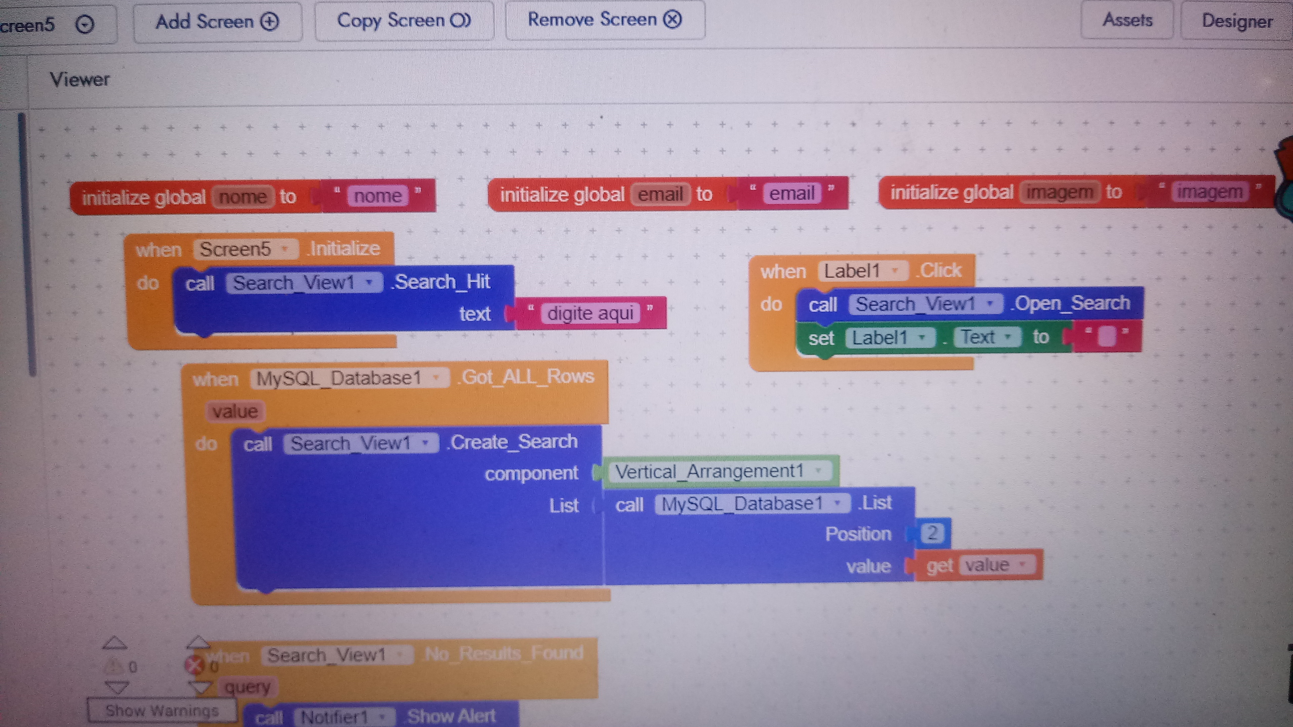 Personal greetings are creating a kodular search on mysql. The bank has a name, email and password.